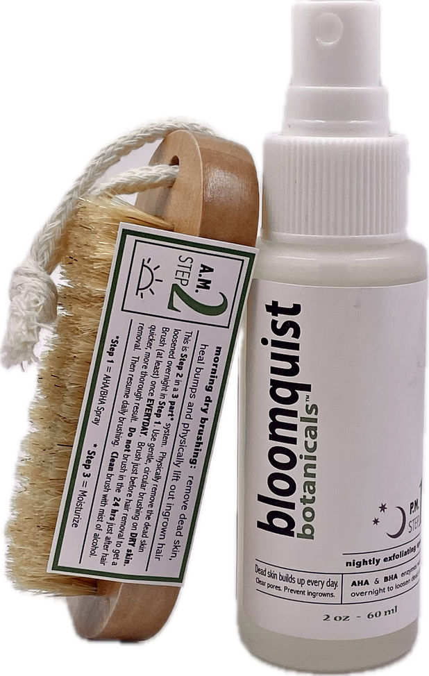 Break the bond of dead skin that can clog follicles. Use our powerful enzymatic exfoliation of natural AHAs. Added in, is the unique in-pore clearing action of our natural BHA. Free trapped hair regrowth. This double action keeps skin smooth and free of ingrowns. Also a great treatment for any face or body acne areas.